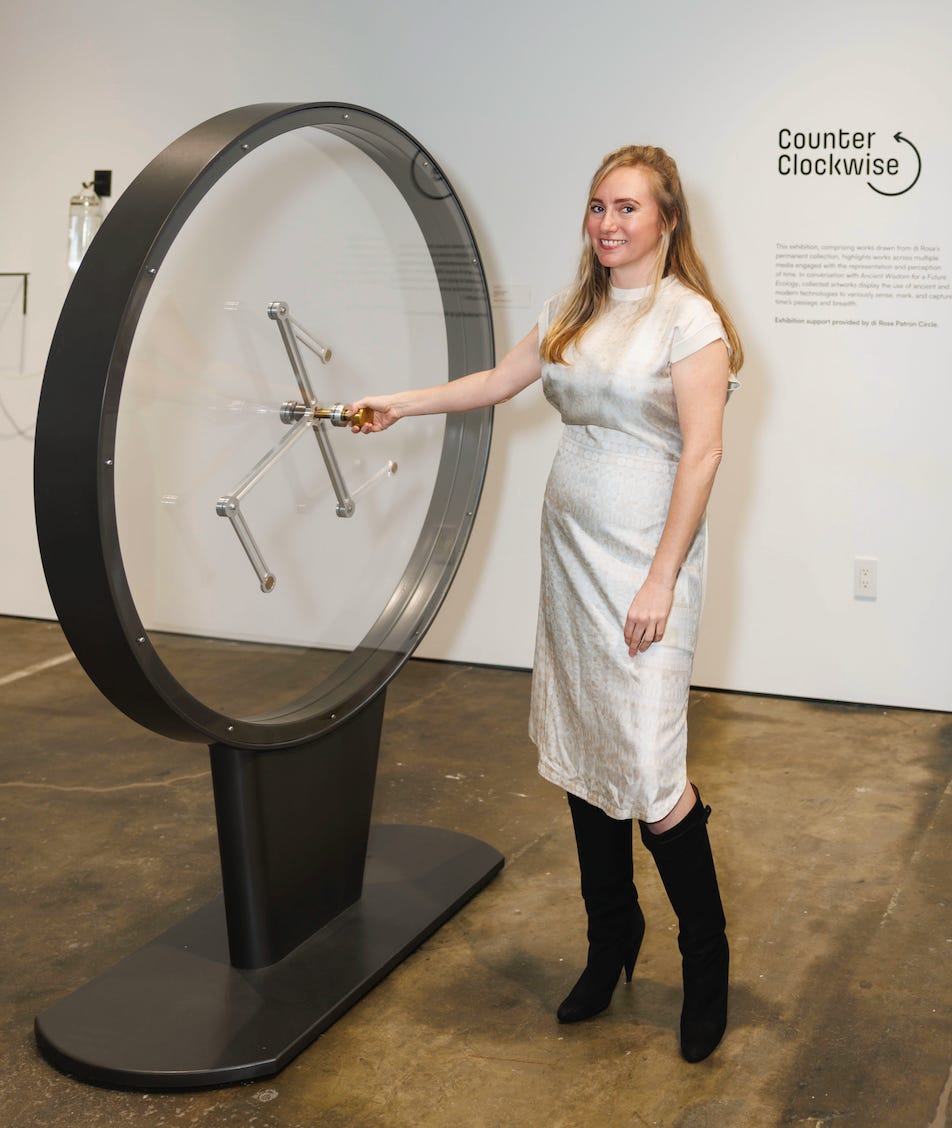 The brilliant curator of this expanded version of Ancient Wisdom, Twyla Ruby, also curated a companion exhibition in one of the galleries to be in conversation with ours from the di Rosa Collection called Counter Clockwise. Since our show is all about different visualizations of time, she selected artworks that also visualize time by the following artists: Bruce Conner, Richard Berger, Ned Kahn, Paul Kos, Therese Lehaie, Randy Colosky, Michael McFalls, Ulrike Palmbach, Sonya Rapoport and Baochi Zhang.