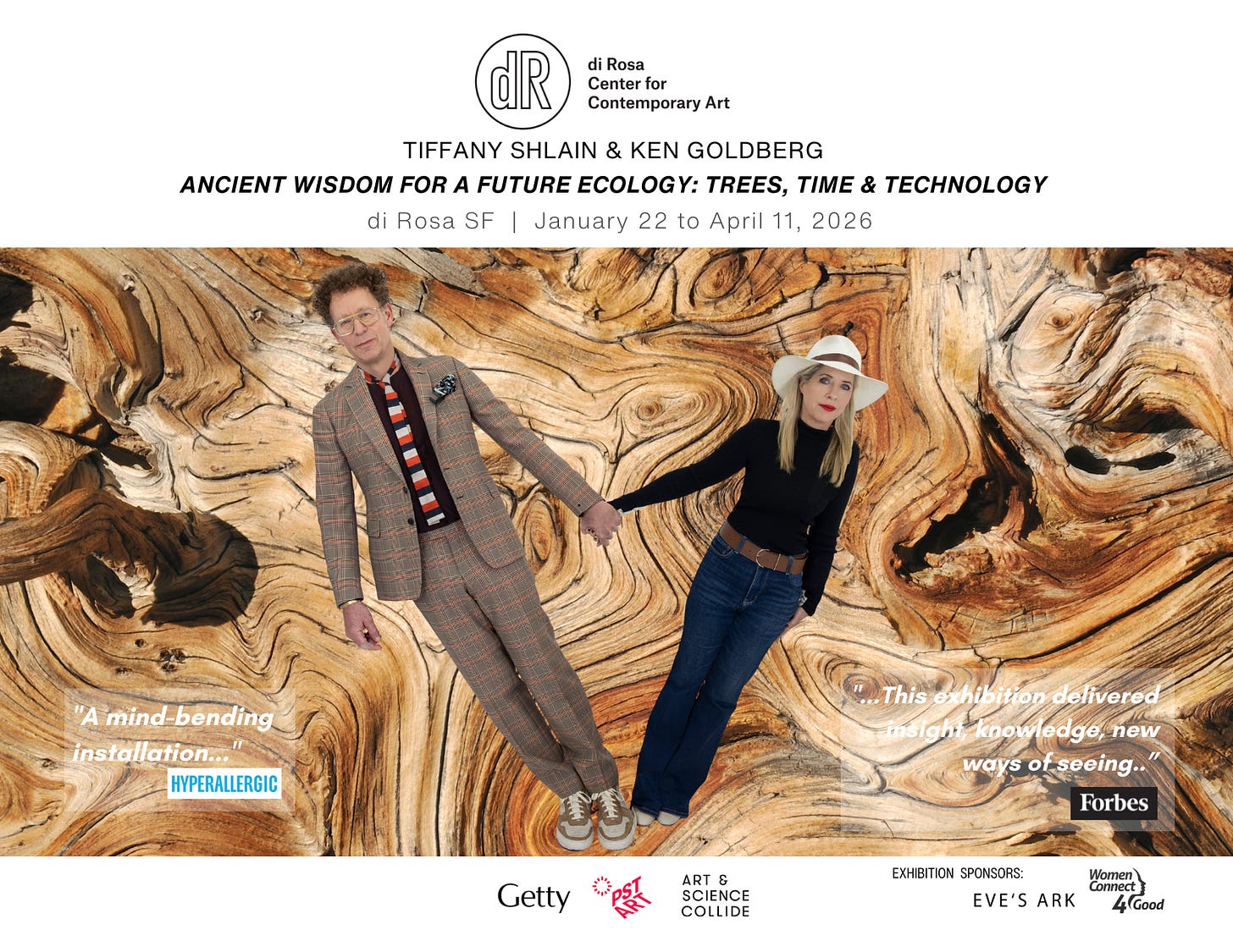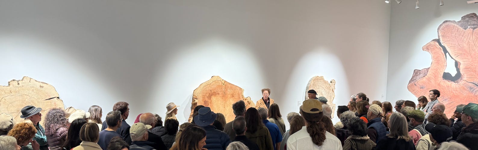 Ken and I are tired, happy, and basking in the glow from seeing thousands of you opening weekend of Ancient Wisdom for a Future Ecology: Trees, Time & Technology at di Rosa Center for Contemporary Art in SF and at ATRIUM with our Tree of Knowledge sculpture. It was all the culmination of so many conversations, ideas and hard work to make it happen. It was thrilling to have Artnet list it as one of the 7 Must-See Museum Shows in San Francisco!