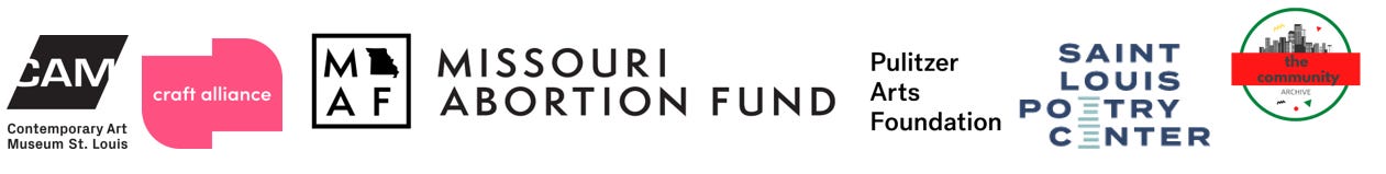 Partners include Contemporary Art Museum St. Louis, Pulitzer Arts Foundation, Craft Alliance, Missouri Abortion Fund, St. Louis Poetry Center, and the Community Archive. RSVP here.
