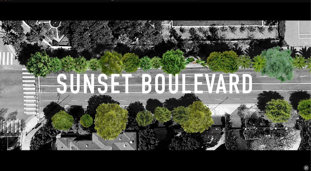 Inspired by Ed Ruscha's Streets of Los Angeles archive (1965–present), this aerial video offers an artistic interpretation of tree canopy coverage on four major LA boulevards. Whereas Ruscha focused on urban architecture, Ken and I use AI tools and Google’s Auto Arborist Dataset to focus on urban treescapes, panning down Hollywood, Sunset, Manchester, and Whittier Boulevards to contrast their shade differences. “The pairing of Goldberg and Shlain’s work with Teraoka is inspired by the roots of Teraoka’s practice in the pop and conceptual movements in Los Angeles of the 1970s and 1980s characterized by artists like Ed Ruscha. The video was also selected for its focus on the environment, and economic disparities.”